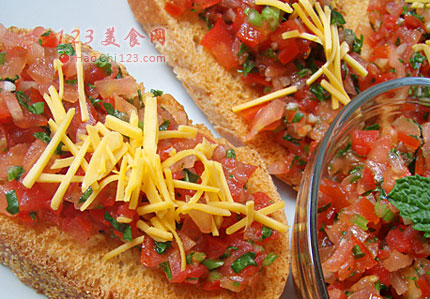 贴士:在西餐馆里,常常有道Bruschetta,人们通常称作appetizer(前菜)或snack(小食)。吃起来酸香开胃,个人觉得味道非常的好。其实这个东西就像Pizza一样都是意大利的传统美食。Bruschetta制作起来非常的简单。[sushi.laoyanhuo.com]