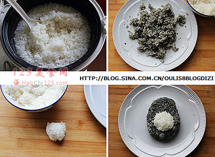 1、大米粘性小,掺入少许糯米,做饭团更容易操作。