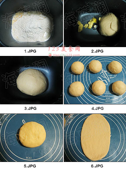 4、盖保鲜膜发酵60分钟后,面团分割成均等6份,滚圆,松弛10分钟。