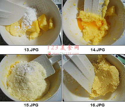 1、软化的黄油加入糖粉和盐,用刮刀搅拌均匀。