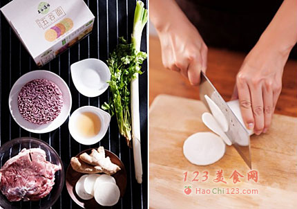 3、白萝卜尽量切薄片。