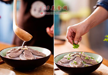 7、浇上煮面的汤汁。