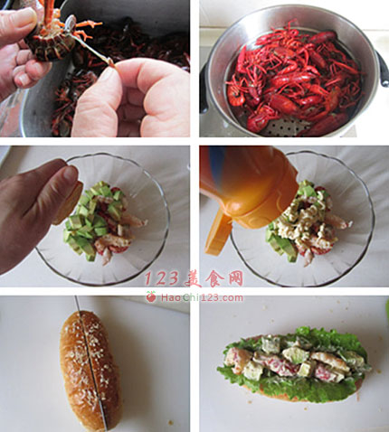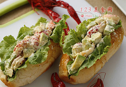 4、龙虾牛油果沙拉的材料:龙虾仁、牛油果、蛋黄酱和半个柠檬汁,搅拌均匀即可。