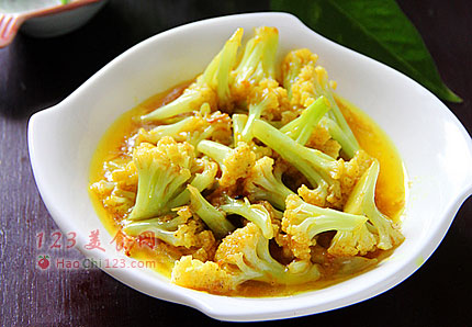 2、咖喱菜花是一道汉族名菜,属于满汉全席之一。这道咖喱菜花是简易版的。用的是咖喱块,味道是一样滴。菜中我添加了芝麻,给这道菜添加一些香气,就更加浓郁了。[sushi.laoyanhuo.com]