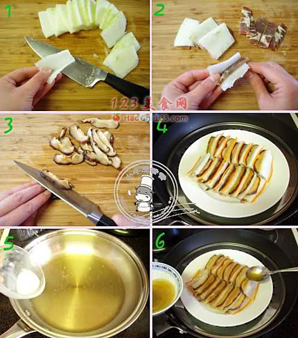 4、各家炉头功率不同、冬瓜切片厚度不同,一般看到冬瓜夹变成半透明状即可。
