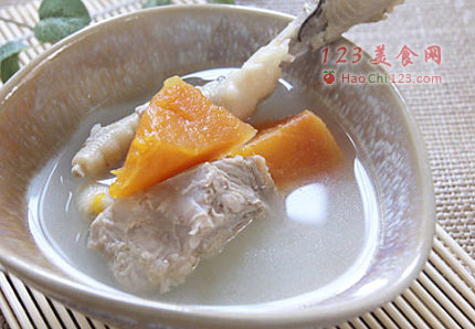 4、这款汤具有清心润肺、滋润肌肤的美容养颜滋补汤。既能补充酷暑造成过度消耗的营养和水份,又可舒缓因暑热给人体带来的不适。