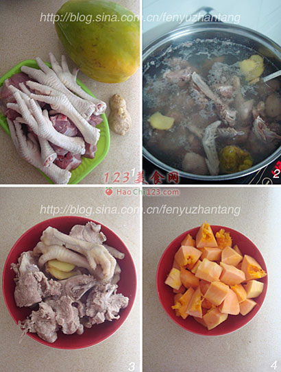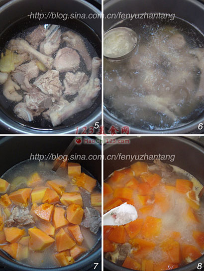 7、将木瓜放入锅里,煮开后继续煮半小时。