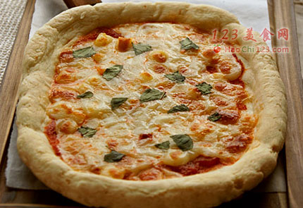 3)烤好的比萨是膨胀起来的,四周边隆起,很像画框的边缘。