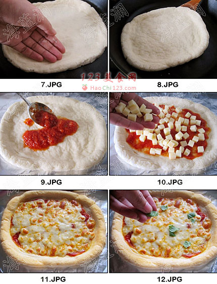 9、水煮番茄提前加盐煮成浓稠状态,晾凉后加在比萨上。