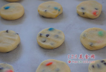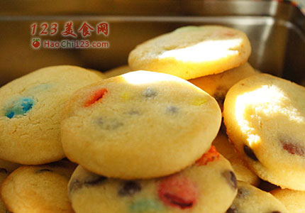 8、彻底放凉,放入密封的容器可以保存2个星期。香浓的奶味,脆脆的饼干,巧克力奇普和M&M的多重味道享受,下午茶可享受了。