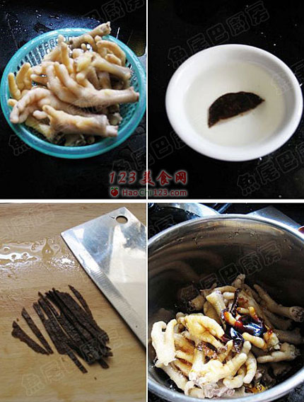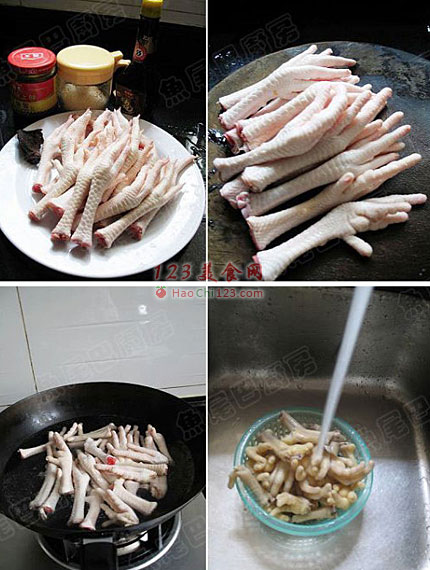 3、锅中煮开水,放入鸡爪,大火煮开后再煮2分钟左右。