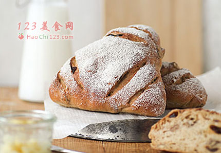 10、最后发酵至约2倍大,在面团表面筛黑麦粉,割口(图6)。