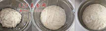 5、如果嫌制作液种麻烦的话,可使用直接法,把液种中的酵母忽略不计,面粉和水分别算到总的面粉量和水量中即可。