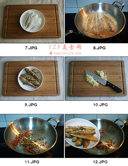 12、放入炸好的鱼,迅速翻炒,关火,撒椒盐。