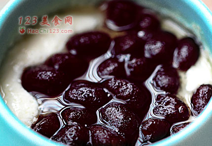 7、放入冰箱冷藏,吃时撒上煮熟的红小豆,这次的双皮奶是低糖的,爱甜食的人就淋一勺蜂蜜吧![sushi.laoyanhuo.com]