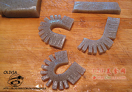 第三种魔芋加工法:这个也很简单,看图即可,如果想做造型长度稍长即可,不需要的话,炒制前切成小段。整块魔芋豆腐如果都要做成这个造型,先竖切再横切即可。