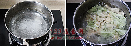 7、锅中水烧开,将蝴蝶面下锅煮熟,捞出即可食用。
