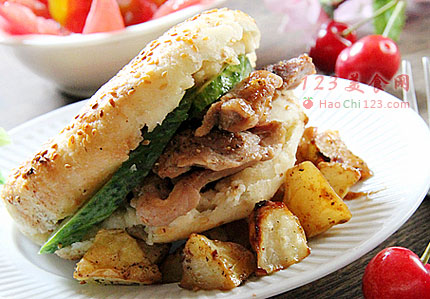 3、这次早餐;烧饼夹烤肉+糖拌西红柿+樱桃+小米粥。烤肉提前腌制好,入冰箱,随烤随取相当方便。[sushi.laoyanhuo.com]