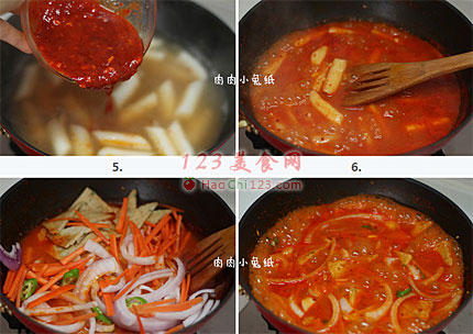 5、倒入准备好的韩式辣椒酱汁。