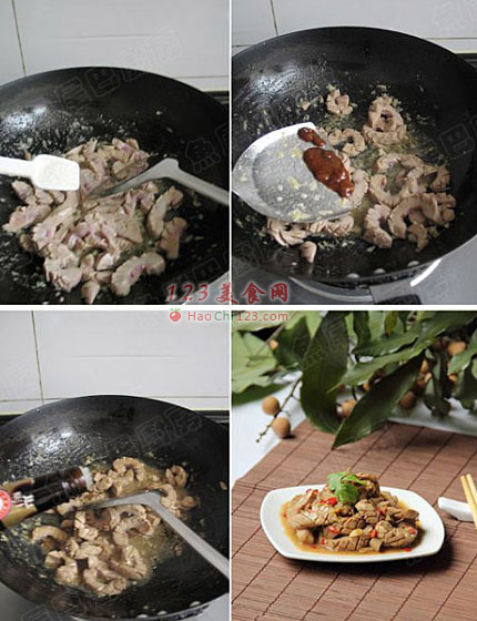 4、爆腰花讲究的就是火侯,所以整个翻炒过程一定要大火,并且要快速翻炒。
