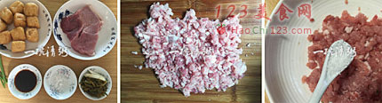 2、将猪肉洗净后剁碎。