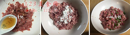 6、加入小葱后揉捏均匀,腌制十来分钟。
