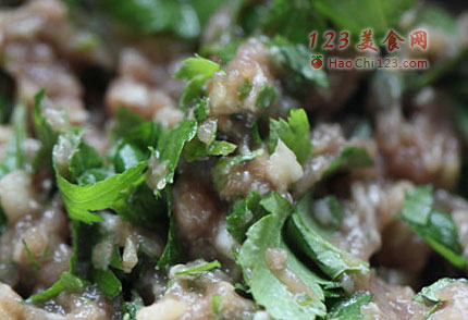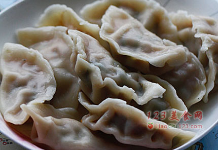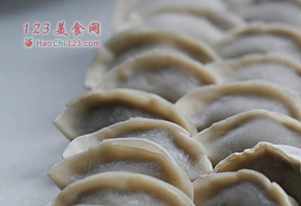5、用饺皮包入馅子,捏紧边子。