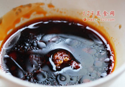 6、调味碟:生抽、醋、香油、红跺椒一小勺。