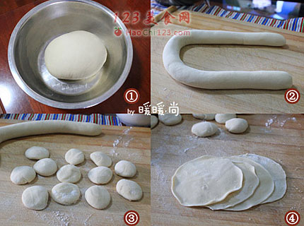 1、在富强粉里加一点点的盐,用凉白开合成较柔软的面团,并将和好的面团盖上保鲜膜或湿毛巾醒发半小时左右。