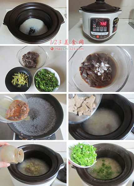 1、阴米清洗干净后放入煲中,水量一般是米的2-3倍,盖上盖煮粥,按下砂锅煲设定键,2个半小时后,粥就熬好了;我是使用的预约功能,头天晚上准备好,第二天一早粥就自动煮好了。