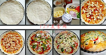 1、如比较喜欢吃面饼薄一点的批萨,此面饼的量可分成三份8寸的批萨。