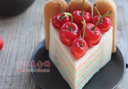 18、蛋糕上边摆红樱桃装饰。