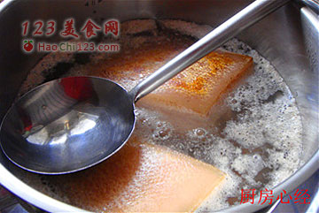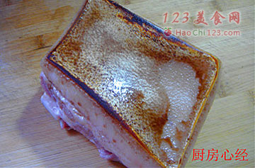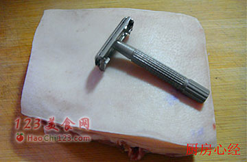 2、一定要将肉皮反复刮净,第一是去猪毛,第二失去污。不要以为肉皮看着干净,就忽略此步。