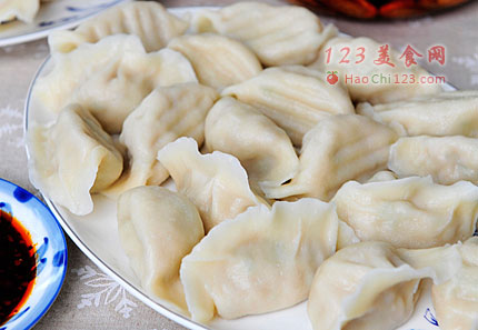 11、起锅烧水,水开后,下入水饺,三点三开后,捞出。