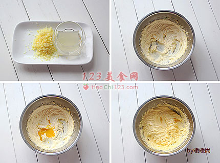 6、导入柠檬汁和柠檬皮茸,拌匀。