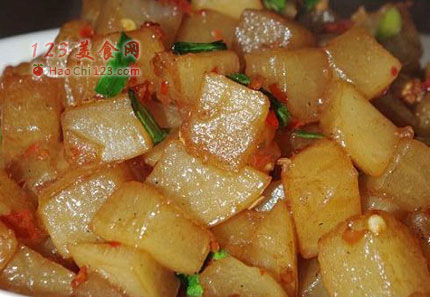2、平时萝卜多与排骨、羊肉、鸭肉、鱼等炖汤吃,于是想变个新吃法,用大蒜干椒炒萝卜丁,没想到味道非常地好,爽口又下饭,做法又简单。[sushi.laoyanhuo.com]