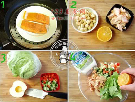 1、三文鱼可以用其它没有鱼刺的鱼排代替,注意做沙拉的鱼肉应该去掉所有鱼刺。