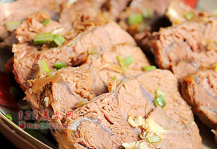 6、将卤好的牛肉切片,按照自己的口味喜好浇上调味汁或者蘸着调味汁吃就可以了。