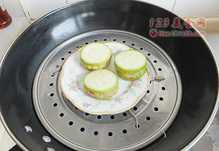 6、上蒸锅,大火烧开后放入蒸盘,蒸10分钟左右即可。