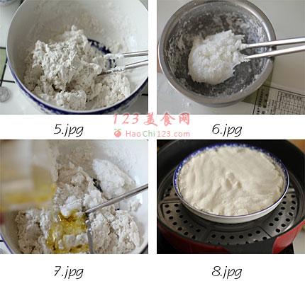 2、活糯米粉团和澄粉团的时候,水一定要一点一点放,活到没有干粉即可。