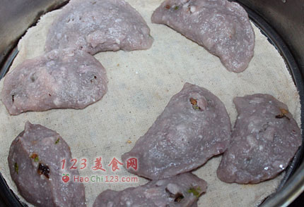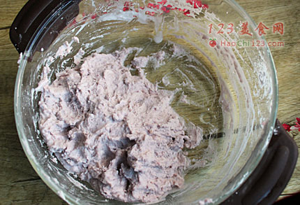 7、下次做的时候,一定要把香芋碾碎,这里还能看出一个个的疙瘩呢,哈哈![sushi.laoyanhuo.com]