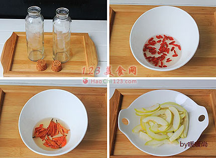 1、泡制香梨百合果醋的时候没有添加任何糖在里面,这样泡好的果醋比较酸,如果不喜欢太酸的口味可以在泡果醋的时候在容器底部铺一层冰糖。