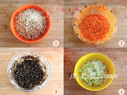 2、胡萝卜洗净去皮后切碎丁。