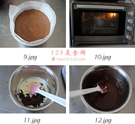 12、搅拌至巧克力融化,混合均与,放凉冷却备用。