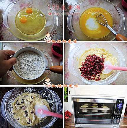 6、将蛋糕面糊倒入模具中,不要超过标志线,烤箱预热170度,蛋糕模入在烤网上中层,烤约18分钟。