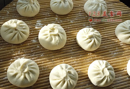 9、包好后放温暖处继续饧30分钟左右,时间根据温度而定,如果温暖20分钟差不我,天气冷的时候大概半小时。眼观,包子比之前长胖了就OK。这一步很关键,二发的好,才能蒸出白胖的包纸,不能省略!