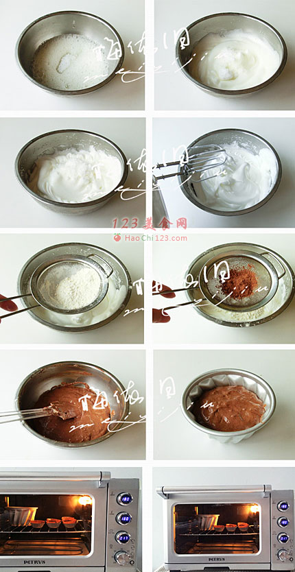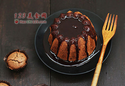 8、将模具取出后倒扣,待放凉后再将蛋糕脱模,食用前,淋上巧克力酱。