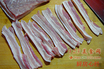 3、切成5毫米厚的长片。