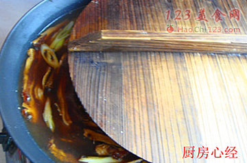 7、锅中水烧开后,即可转入最小火,盖盖,炖制2.5个小时。