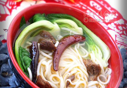 二、下面说面条:这个面方便就方便在你可以用任何面条来煮,鲜面条,挂面,或者是方便面都可以,锅里放水烧开,放入面条煮熟,然后放些时令的小青菜在锅中烫熟(油菜或者是小白菜都是不错的选择),浇一勺牛肉卤在上边就可以了,这个面可以说是麻辣鲜香,还非常的方便。[sushi.laoyanhuo.com]